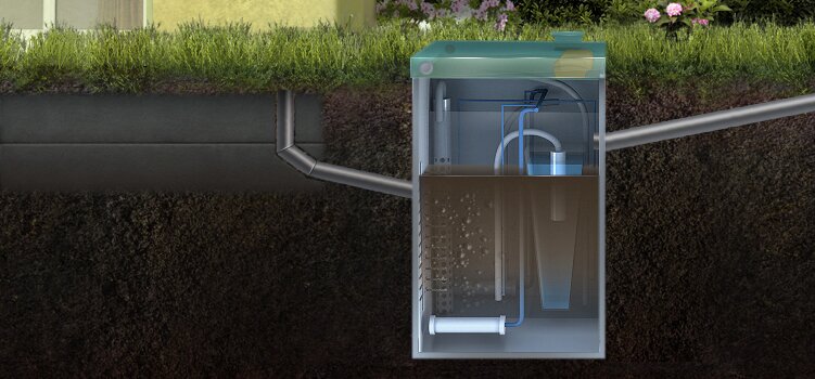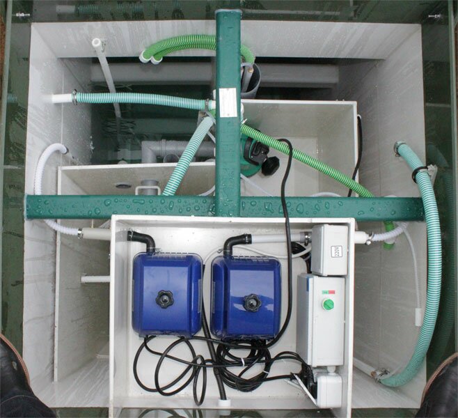 Локальное очистное сооружение, которое редко устанавливается на загородный дом. Чаще всего это группа домов или строение рассчитанное на проживание нескольких семей, ведь собрать до 20 человек по одной крышей, которые при этом полноценно будут пользоваться сантехническими приборами достаточно проблематично. Но есть конечно исключения ввиде больших семей или коттеджей, где установлены большие потребители воды (джакузи, купели). Пиковый сброс данной станции рассчитан на 1000 литров и суточный объём который она может переработать не превышает 4 кубов. На поверхности земли будут возвышаться две горловины зелёного цвета.